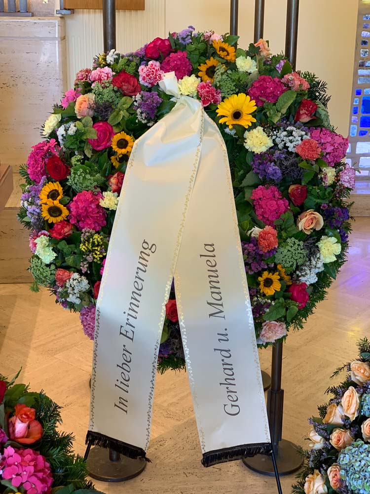 Wir hoffen, dass wir Ihre Trauer etwas stillen können, in dem wir für Sie Kränze, Buketts und Sarggestecke als letzten Gruß anfertigen. Rechtzeitig vor Beginn der Trauerfeier wird der ausgewählte Blumenschmuck auf Wunsch von uns zum Friedhof geliefert.